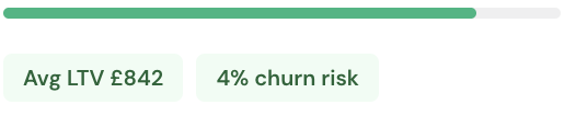 LTV trajectories and churn probabilities, computed daily from your real customer data. Not benchmarks.