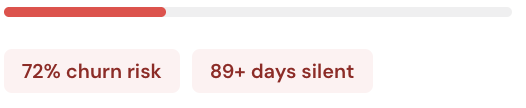 Know which customers are at risk of leaving before they ghost you. Scored 0–100 with suggested retention actions.